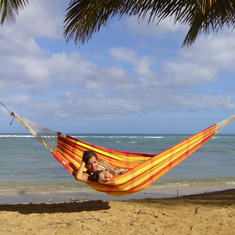 Die Barbados entsteht weitestgehend in Handarbeit. Der dichte, schwere Stoff ist angenehm im Griff und sehr langlebig. Durch die zahlreichen Aufhängeschnüre wird die Barbados sehr gut aufgefächert und du liegst traumhaft schwerelos.