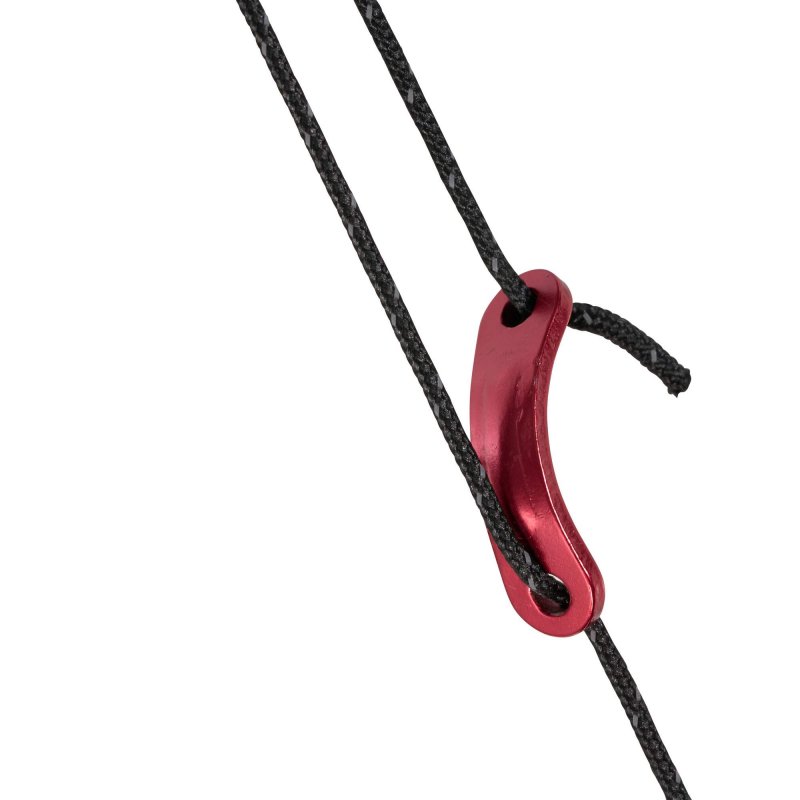 Das Tarp ist 340 cm lang und deckt damit die gesamte Hängemattenlänge ab. Es wird an den Befestigungspunkten der Hängematte eingehängt und kann durch die beiliegenden Verstellkarabiner an verschiedene Hängemattenlängen angepasst werden. Verstärkte Abspannpunkte und sein trapezförmiger Schnitt erlauben eine sichere Abspannung zu den Seiten.