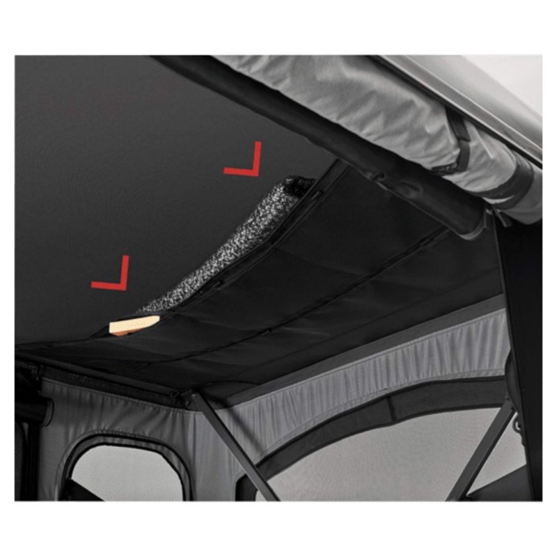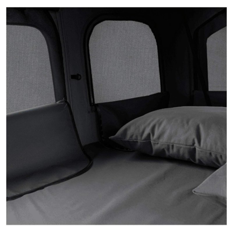 Eine geräumige Oberschale ermöglicht dir auch im geschlossenen Zustand Platz für Utensilien. So musst du nicht jeden Morgen das Bett einpacken, sondern kannst Schlafsack, Kissen und andere Reiseutensilien im Dachzelt belassen.