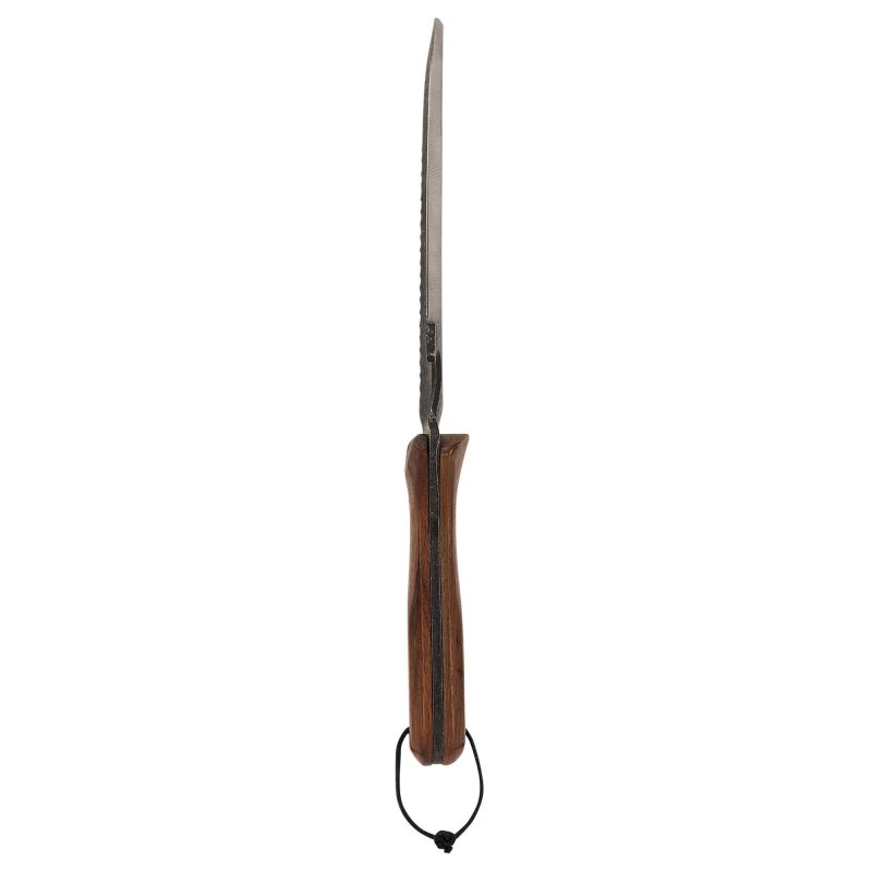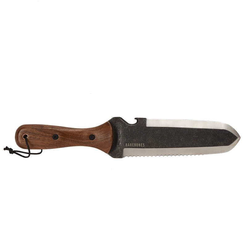 Inspiriert vom japanischen Design ist das Hori Hori ein praktischer Helfer bei der Gartenarbeit und bei Bushcraft-Abenteuern. Die korrosionsbeständige Klinge aus 4CR13-Stahl ist scharf gezahnt und teilt mühelos Wurzeln oder Taue. Die andere Seite ist mit einer Universalklinge und einer Hakenklinge ausgestattet, mit der du kleine Schnüre schneiden kannst. Außerdem kannst du sie als Flaschenöffner nutzen, wenn du nach schweißtreibender Gartenarbeit eine Erfrischung benötigst.