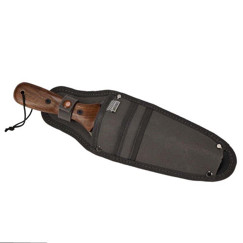 Verstaut wird das Gartenmesser in einer robusten Scheide aus kräftigem Polyester, in dessen