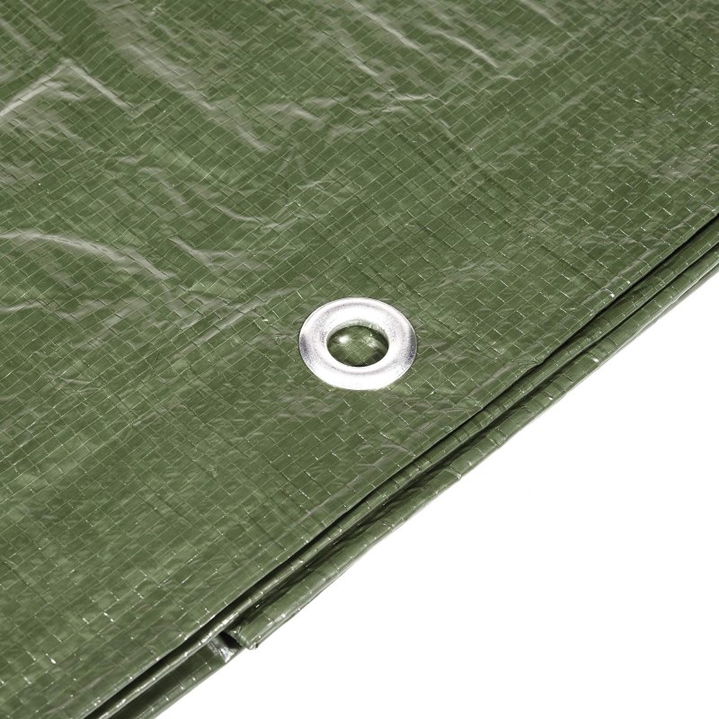 Alle Ränder sind verstärkt und mit mehreren Aluminiumösen ausgestattet, die eine Fixierung mit einer Schnur ermöglichen (7 Ösen auf der Längsseite und 6 Ösen auf der Querseite).