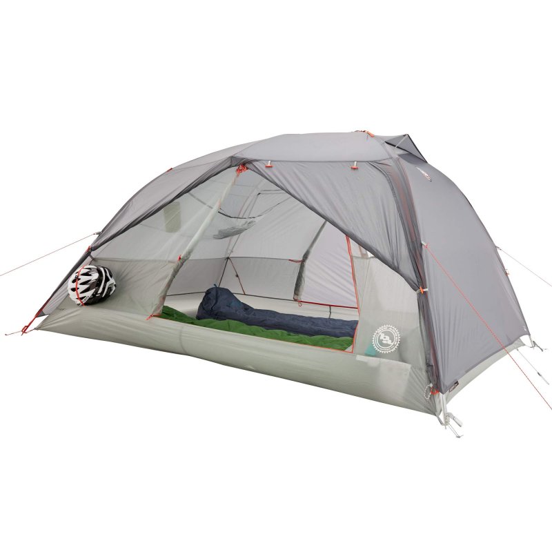 Das Hauptaugenmerk bei der Entwicklung lag auf der Nutzung als Bikepacking- und Fahrradzelt. Der Packsack ist deutlich verstärkt worden und kann mit den beiliegenden Klettverschlussbändern oder eigenen Riemen am Lenker oder Rahmen befestigt werden. An den 10 Schlaufen auf dem Außenzelt kannst du durchgeschwitzte Radkleidung aufhängen. Das Innenzelt hat zwei Helmhalterungen erhalten. Dort können die Helme trocknen und liegen nicht im Weg oder auf dem schmutzigen Boden.