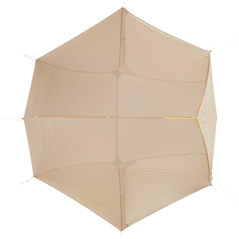 Die Zeltkonstruktion erlaubt dir einen zügigen Aufbau. Dabei wird zuerst das Innenzelt mit Hilfe von Clips am Gestänge befestigt und anschließend das Überzelt mit Blitzverschlüssen am Innenzelt. Du kannst das Außenzelt auch eingepackt lassen und nur im Innenzelt übernachten. So hast du einen zuverlässigen Insektenschutz, der Blick in den Sternenhimmel bleibt jedoch frei.