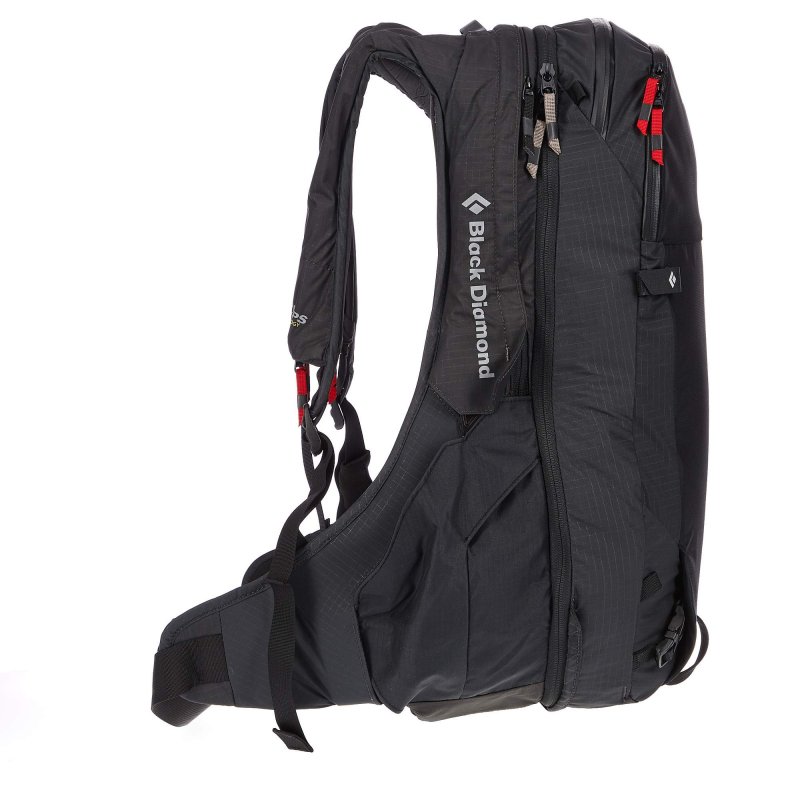 Der JetForce Pro ist ein moderner Skitourenrucksack von Black Diamond, der mit dem vollelektronischen Lawinenairbagsystem von Pieps ausgestattet ist und somit auch ins Flugzeuggepäck darf.