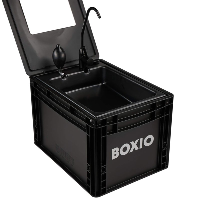 Das Waschbecken funktioniert ganz ohne Strom. Eine einfache Handpumpe sorgt dafür, dass du jederzeit Wasser nutzen kannst. Die leichte Bauweise macht den Transport unkompliziert und ermöglicht dir den Einsatz an nahezu jedem Ort. Zum Set gehören das Waschbecken selbst, eine Brause für die mobile Dusche, ein Spiegel sowie die passenden Boxio Beads für die Wasserhygiene.