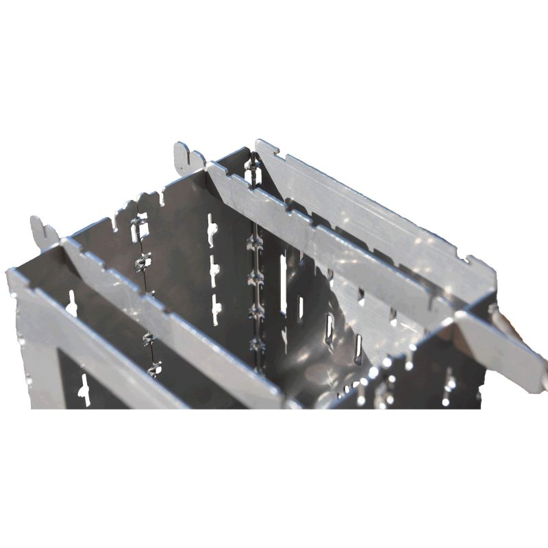 Als Brennstoff können Äste und Kiefernzapfen, aber auch ein Spiritusbrenner oder Esbitwürfel dienen. Dadurch bist du fast überall unabhängig unterwegs. Das Universalrost kann mittig eingesetzt werden, wodurch du die Bushbox auch mit einem Trangiabrenner betreiben kannst. Oben aufgelegt dient das Universalrost als Grillplatte.