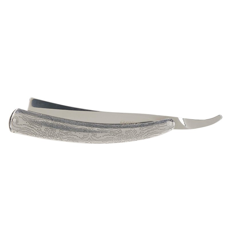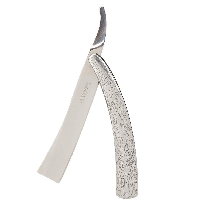 Das Fleet Street Razor ist einem klassischen Rasiermesser nachempfunden, besitzt aber eine kräftige Klinge aus rostfreiem 440A Stahl. Der Stahlgriff ist mit einem schicken Dekor versehen.