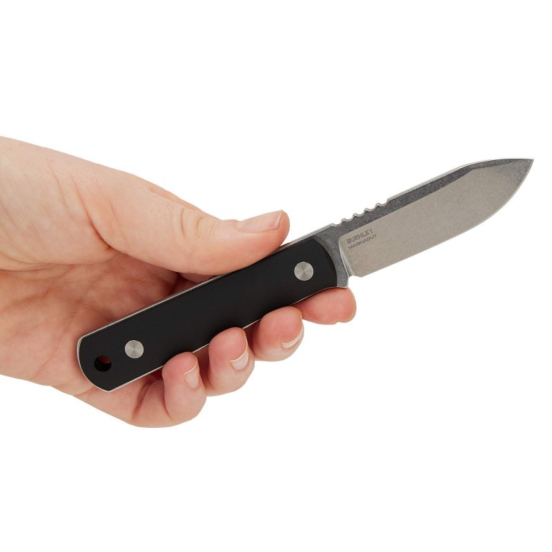 Als Ausgangsmaterial für den Richlite-Griff dient Papier, das mit Harz durchtränkt, gepresst und durch Wärmebehandlung ausgehärtet wird. Das so entstandene Material ist extrem fest und bietet einen angenehm warmen Griff. Abgerundet wird das Design durch ein mattes Stonewash-Finish der Klinge.