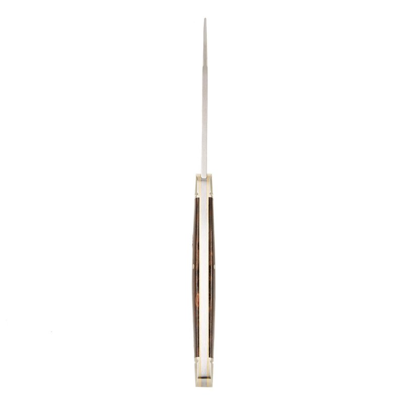 Das Cattle Knife ist die Ur-Form des Taschenmessers und hier in Bilderbuch-Qualität umgesetzt. Es besitzt eine universelle Klingenlänge von 8,2 cm und einen geriffelten Nagelhau, an dem sich geeignete Streichhölzer entzünden lassen. Der Griff aus braun stabilisiertem Maserbirkenholz liegt angenehm in der Hand und wird durch Backen aus Neusilber (Kuper-Nickel-Zink-Legierung) in Szene gesetzt. Das historische Baumzeichen-Emblem von Böker ist farblich und optisch passend im Griff eingesetzt.