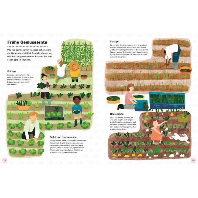 Mit diesem farbenfroh illustrierten Sachbuch erleben Kinder ein ganzes Jahr auf einem Bio-Bauernhof: Von der ersten Gemüseernte im Frühling und der Arbeit der Bienen im Bienenstock im Sommer über das Einkochen von Marmelade im Herbst bis zum Schneiden der Obstbäume im Winter. Bunte Illustrationen zeigen den jungen Leser*innen hautnah das vielfältige Leben auf dem Bauernhof - vom Besuch auf dem Wochenmarkt über die Schafschur bis zur Apfelernte.