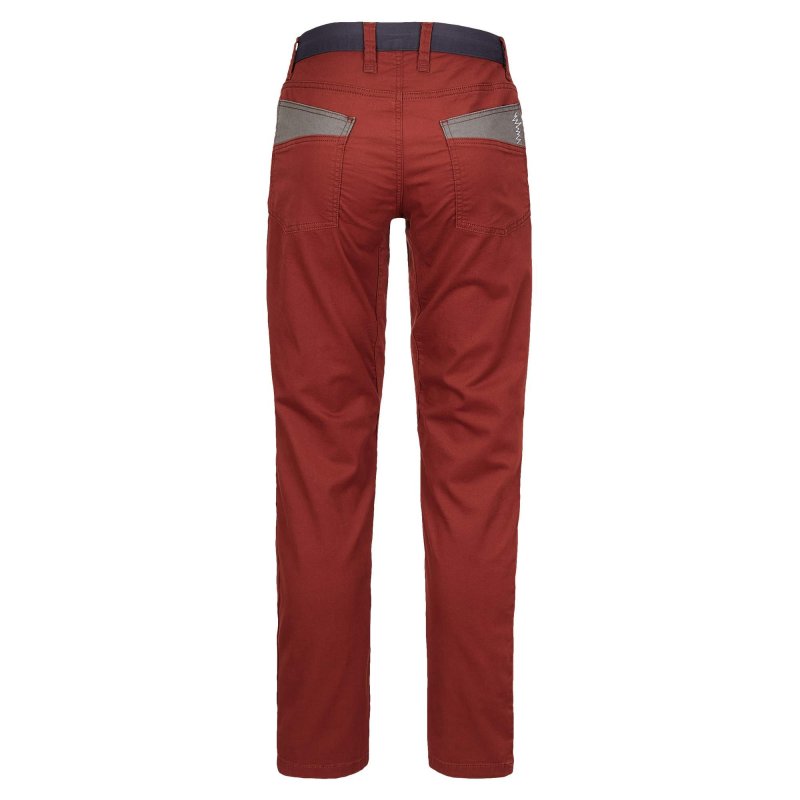Die Hose hat den Schnitt einer klassischen Five-Pocket und wird per Knopf und Reißverschluss geschlossen. Dank des elastischen Zwickels im Schritt bietet die Hose auch bei extremen Moves absolute Bewegungsfreiheit. Die Knie sind leicht vorgeformt. Der elastische Bund ist besonders flach verarbeitet, sodass er unter dem Klettergurt nicht aufträgt.
