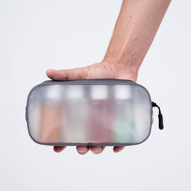 Diese transparente Kunststofftasche eignet sich bestens für die Flüssigkeiten, die du mit an Bord eines Flugzeugs nehmen möchtest. Die Tasche hält dicht: Sie ist komplett geschweißt.
