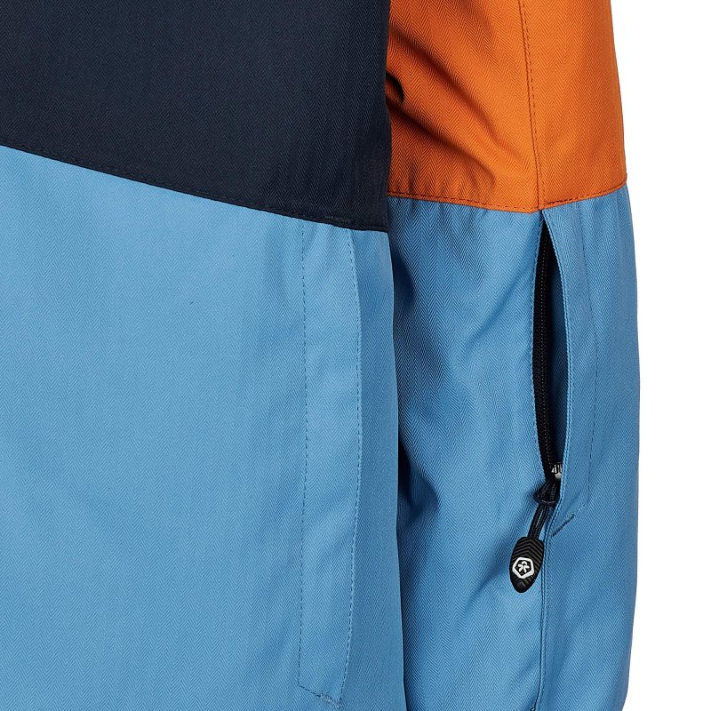 Das Außenmaterial hat einen angenehm weichen Griff und raschelt kaum, wenn sich die Kids herumtollen. Der bewegungsfreundliche Schnitt mit Raglan-Ärmeln sorgt dafür, dass deine Kinder in ihren Bewegungen nicht eingeschränkt werden. Der Schneefang verhindert, dass aufgewirbelter Schnee an den Rücken gelangt. Die Ärmelbündchen lassen sich per Klettverschluss enger stellen. Zusätzlich sind elastische Stulpen in die Ärmel eingearbeitet, die die Handrücken wärmen und vor eindringender Nässe und Kälte schützen. In der Ärmeltasche mit Reißverschluss kann der Skipass griffbereit verstaut werden. So eignet sich die Ski Jacket - Colorblock perfekt zum Skifahren, aber auch zum Rodeln, Schlittschuhlaufen und anderen winterlichen Aktivitäten bei Schnee und Eis.