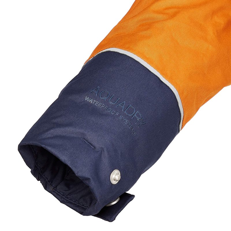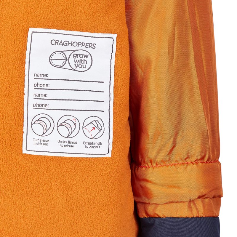 Das Innenfutter teilt sich in kuscheliges Fleecefutter und Taftfutter in den Ärmeln auf. Damit die Kapuze nicht rutscht, ist sie mit einer verdeckten Elastikeinfassung ausgestattet. Die Ärmelbündchen lassen sich dank Klettverschluss individuell anpassen. Bei einem spontanen Wachstumsschub kann an den Ärmel der Saum herausgelassen werden.