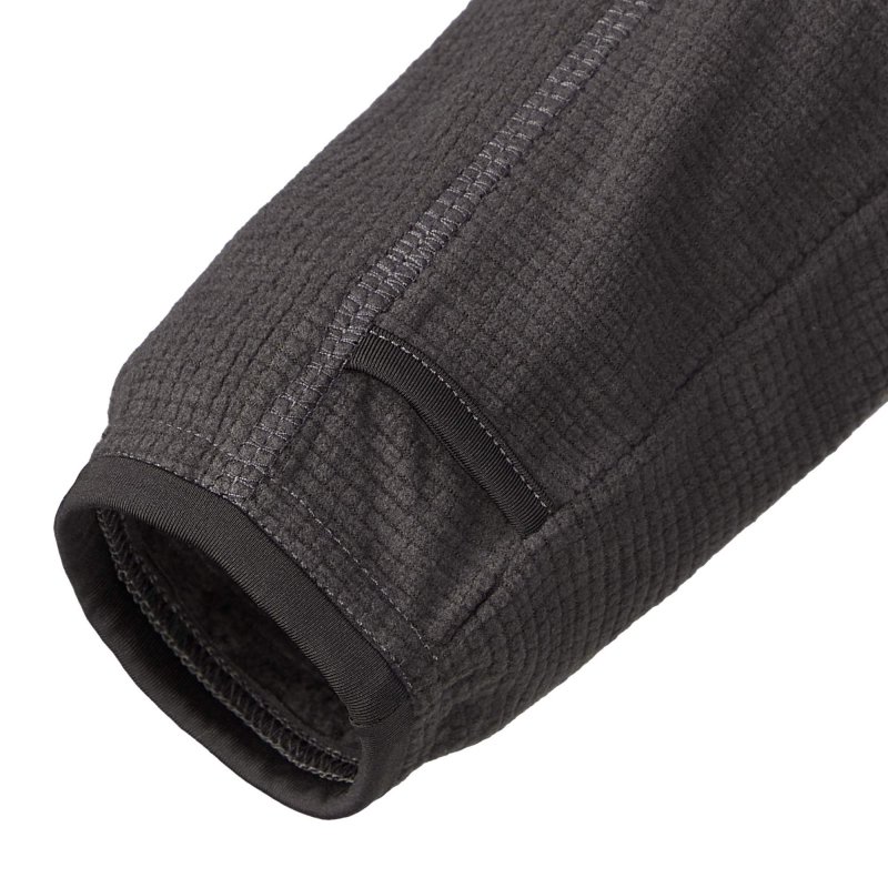 Die Fleecejacke trumpft mit recyceltem Polyester und einer Waffelstruktur auf. Somit ist sie nicht nur robust, sondern verfügt auch über ein gutes Feuchtigkeitsmanagement. Entstehender Schweiß wird flott weitergeleitet und das schnelltrocknende Material sorgt für ein komfortables Tragegefühl.