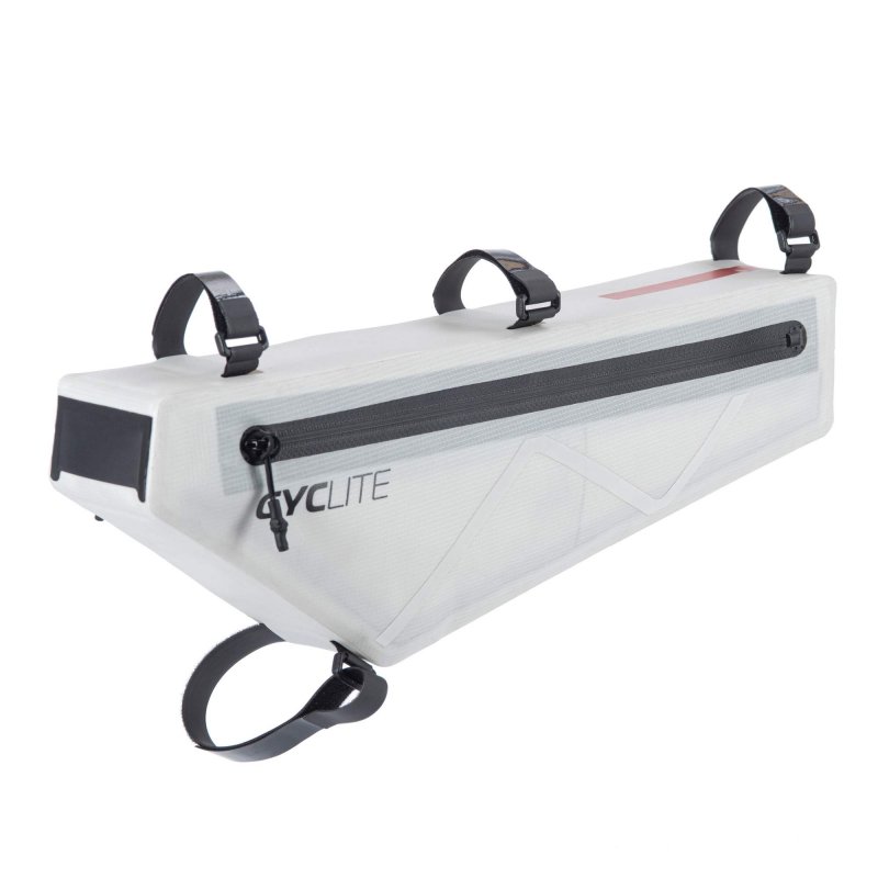 Nur das Nötigste dabei beim Bikepacking, und das auch noch superleicht: Dafür ist diese Rahmentasche geschaffen. Das Material ist leicht und gleichzeitig zäh und robust sowie wasserdicht.