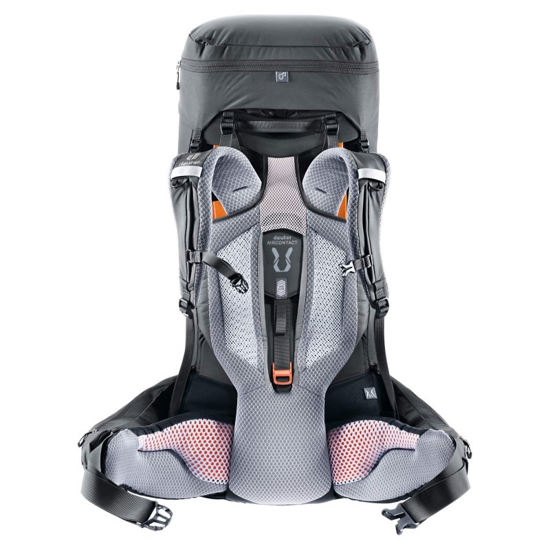 Durch den Y-Rahmen wird eine direkte Lastenübertragung und -kontrolle ermöglicht, sodass dein Rücken entlastet wird. Für den optimalen Sitz auf Wanderungen und Trekkingtouren lassen sich Rückenlänge, Hüftflosse sowie Schulterträger passgenau einstellen. Das Aircontact Tragesystem mit großem Belüftungskanal sorgt für angenehmen Tragekomfort selbst bei schweißtreibenden Aufstiegen.