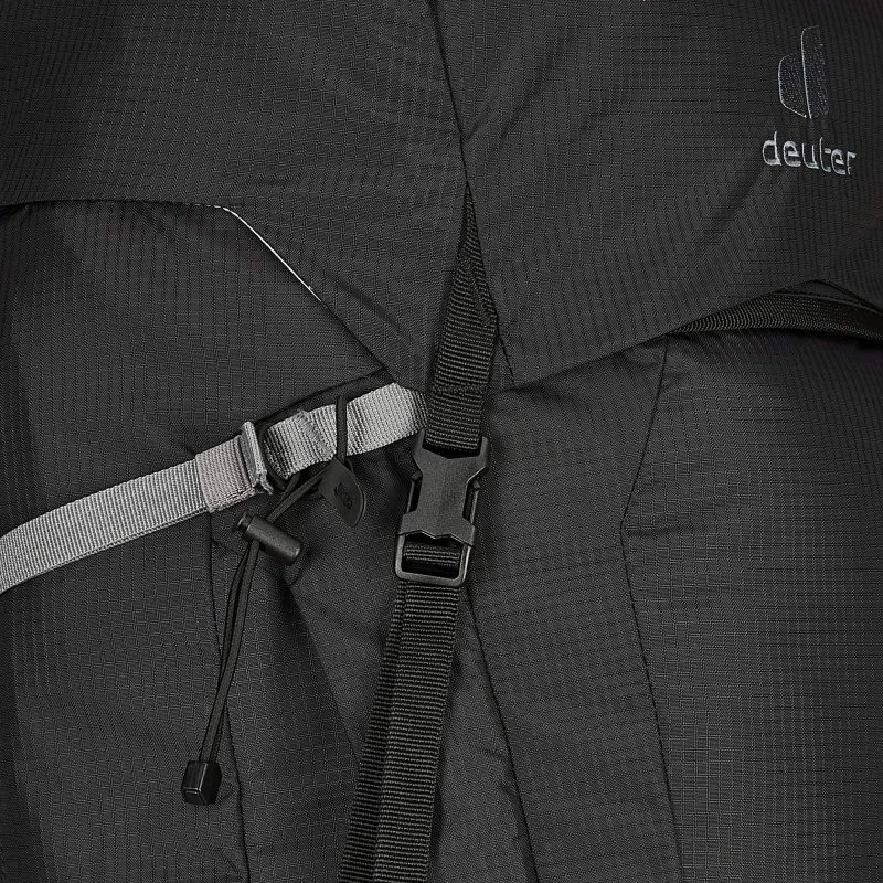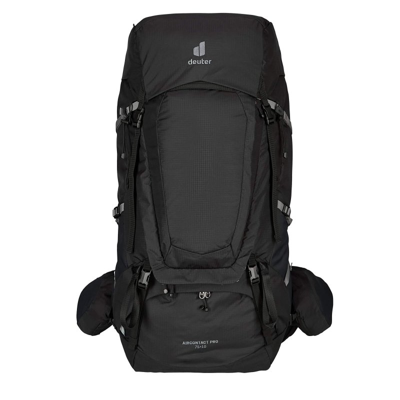 Deuter hat beim Aircontact Pro 75+10 weder an Volumen noch an Fächern gespart. Das große Hauptfach lässt sich bequem über einen U-förmigen Reißverschluss auf der Vorderseite aufklappen und dadurch einfach bepacken. Ein Bodenfach bietet Platz für den Schlafsack und in zwei Deckelfächern können kleinere Gegenstände übersichtlich untergebracht werden. Was schnell zur Hand sein soll, lässt sich griffbereit in den RV-Taschen auf dem Hüftgurt verstauen. Und für die Flüssigkeitsversorgung bietet der Trekkingrucksack gleich drei Möglichkeiten zur Unterbringung: Über eine Trinksystemaufnahme, zwei seitliche Steckfächer für Flaschen oder eine erweiterbare Tasche auf der rechten Hüftflosse, die Platz für eine 1,5L Flasche bietet.