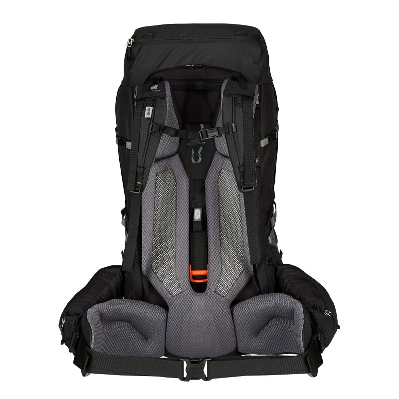 Damit der Trekkingrucksack sich auch bei voller Beladung komfortabel durch die Wildnis trägt, hat Deuter das Tragesystem mit einigen Features ausgestattet. Der Kontaktrücken ist nicht nur weich gepolstert, er ist auch mit Belüftungskanälen und atmungsaktivem Mesh ausgestattet. So genießt du auch auf anstrengenden Touren stets optimale Belüftung. Damit der Trekkingrucksack so passgenau wie möglich sitzt, verfügt der Aircontact Pro 75+10 über eine einstellbare Rückenlänge (VariSlide). Für eine optimale Lastenverteilung verfügt der Rucksack über einen stabilen Aluminiumrahmen, der das Gewicht effektiv auf deine Hüfte überträgt. Dabei reduziert ein Lumbal-Pad potenzielle Druckstellen am unteren Rücken und optimiert so den Tragekomfort. Die Schultergurte und Hüftflossen sind ebenfalls weich gepolstert und passen sich dank der ergonomischen Form perfekt an deinen Körper an.
