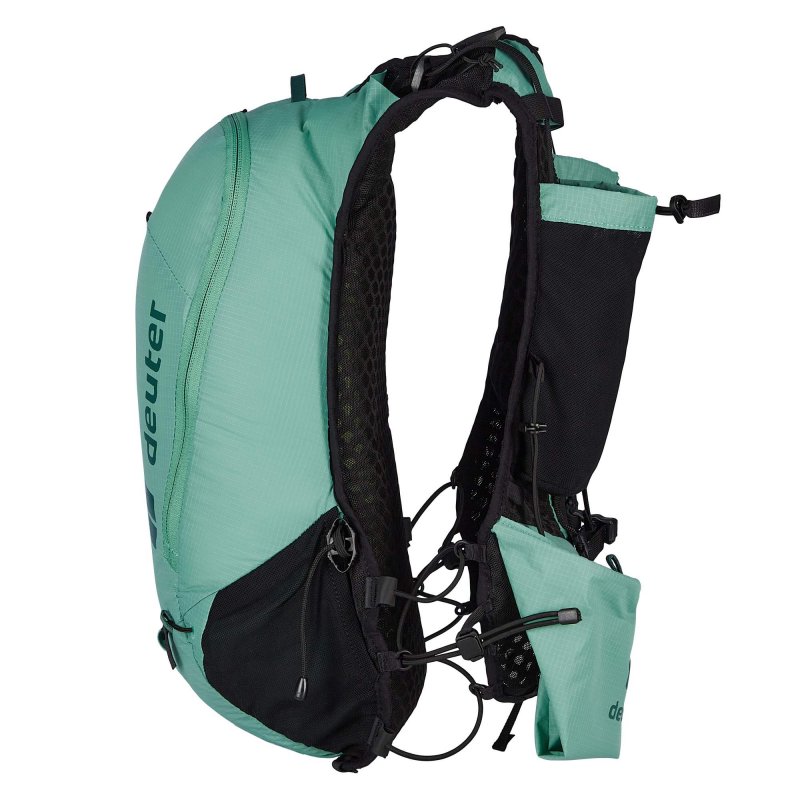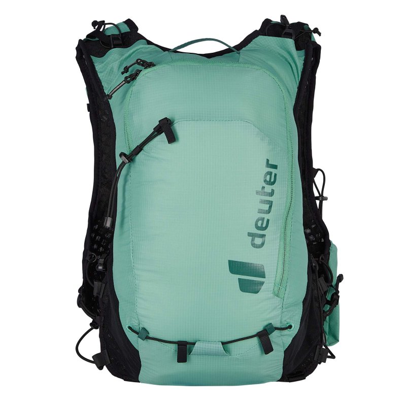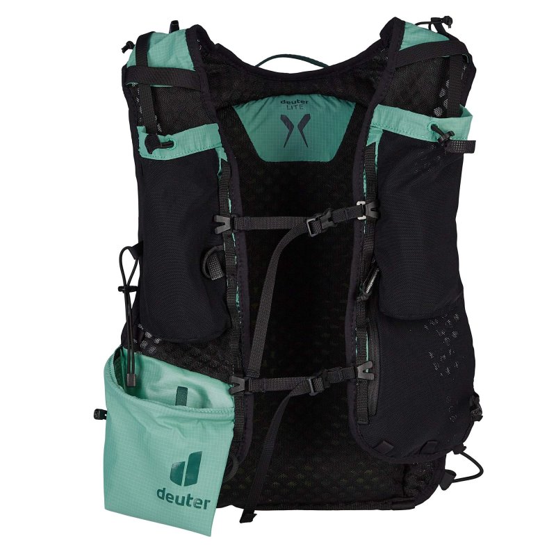 Der Trailrunning-Rucksack besteht aus einem leichten Ripstop-Material, das nicht beschwert. Die westenartige Konstruktion sorgt für einen anschmiegsamen und rutschfreien Sitz. Über zwei elastische Kordeln und die beiden verstellbaren Brustgurte kann die Passform des Tragesystems unkompliziert angepasst werden. Luftiges Mesh verhindert einen Hitzestau und kühlt beim Laufen angenehm. Ein Kondensationsschutz sorgt für einen trockeneren Rücken.