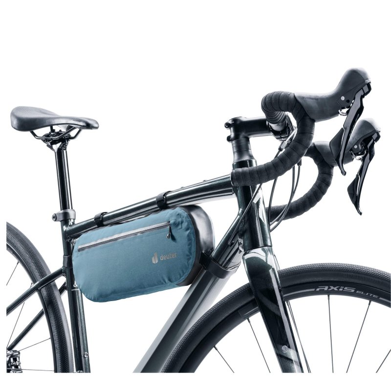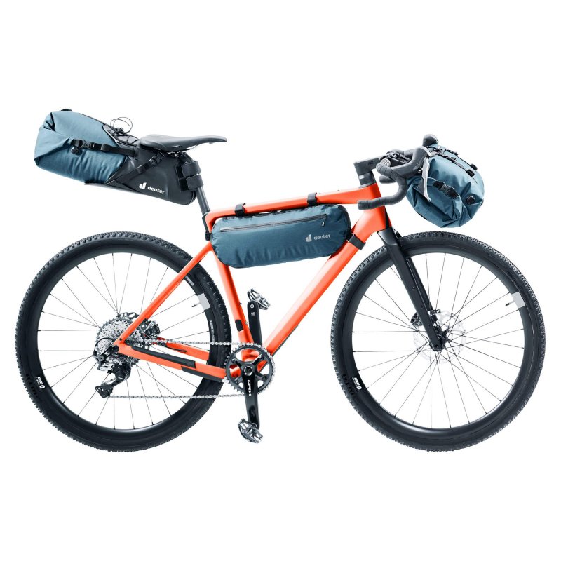 Die robusten Gurtbänder der Fahrradtaschen lassen sich über Klettverschlüsse anpassen und sorgen für einen sicheren Halt. Durch die Verwendung von leichten Materialien eignet sich die Tasche auch für Carbon-Fahrräder.
