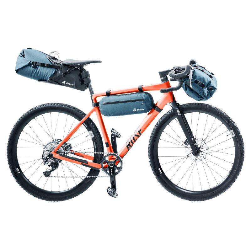 Lenkertaschen-Kombination aus leichtem, wasserdichtem Packsack mit beidseitigem Roll-Top und Komprimierungsventil sowie Lenkertasche aus strapazierfähigem Material mit elastischem Kompressionszug und Materialschlaufen auf der Oberseite. Ermöglicht schnelles Be- und Entladen bei spontanen Zwischenstopps, da die Taschenhalterungen am Fahrrad belassen, während der Packsack mitgenommen werden kann. Die robusten Gurtbänder können dank Klettverschluss zur Verdrehsicherung und mitgelieferter Distanzstücke an unterschiedlichste Rohrdurchmesser angepasst werden und sind auch für Carbon-Fahrräder geeignet.
