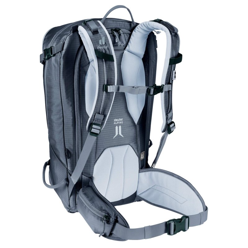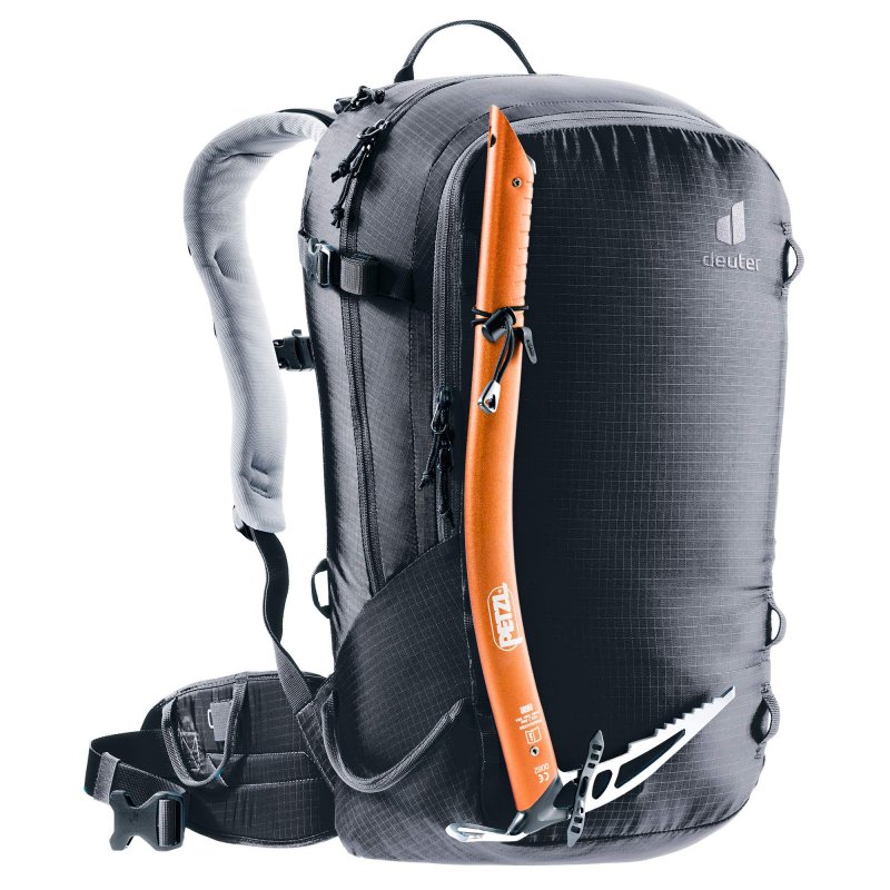 Der Freerider besticht mit seiner durchdachten Winter-Ausstattung, zum Beispiel mit der komplett aufklappbaren Rückenöffnung. Zum einen bietet er so einen optimalen Überblick über die Ausrüstung. Zum anderen bleibt das Rückensystem beim Ablegen des Rucksacks trocken. Sollte trotzdem etwas Schnee an das Tragesystem gelangen, sorgt das neue robuste, atmungsaktive und schneeabweisende Material für einen trockenen Rücken. Auch das Thema Sicherheit wird beim Freerider großgeschrieben. Mit dem separaten und schnell zugänglichen Sicherheitsfach für Sonde und Schaufel hält der Touren-Rucksack das Wichtigste im Notfall griffbereit. Neu ist auch das variable Fixierungssystem. Mit zwei separaten Riemen können Skier, Snowboard und Schneeschuhe im Handumdrehen außen am Rucksack befestigt werden: Skier diagonal oder in A-Form, Snowboard und Schneeschuhe vertikal. Außerdem dienen die flexibel einsetzbaren Befestigungsriemen zur seitlichen Kompression.