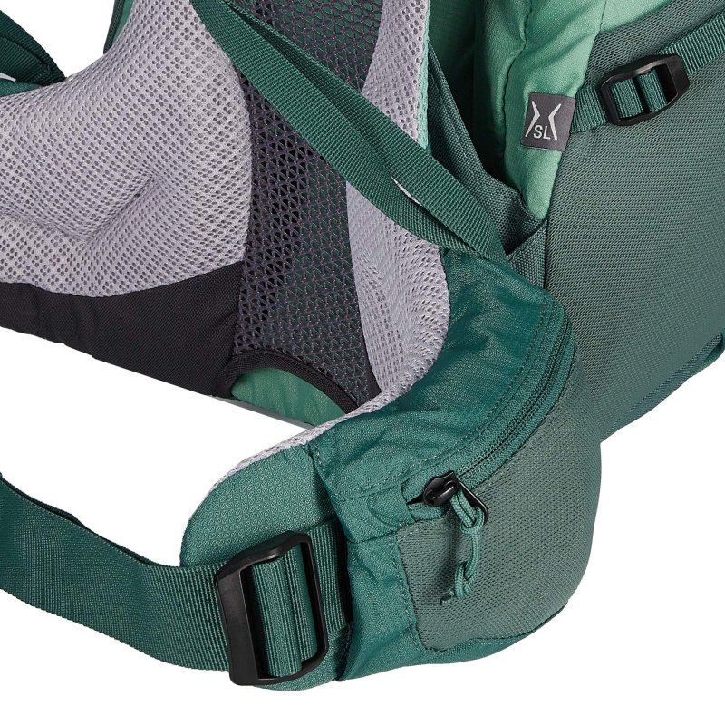 Das Aircomfort-Rückensystem mit leichtem Federstahlrahmen sorgt für eine sehr gute Belüftung deines Rückens. Möglich macht es der luftige Mesheinsatz über der Wirbelsäule. Die luftdurchlässigen Active Fit Schultergurte folgen deinen Bewegungen und passen sich so deiner Schulterform an. Das weiche Rückenpolster geht nahtlos in den Hüftgurt über und schmiegt sich sehr gut an die Hüften an. Die SL-Version hat eine kürzere Rückenlänge als die Unisex-Variante und die Form der Schultergurte ist an die weibliche Anatomie angepasst.