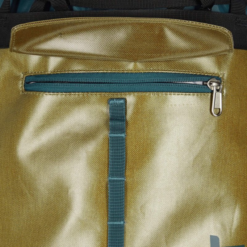 Dieser ungewöhnliche Trekkingrucksack ist aus robustem, wasserabweisendem Planenmaterial, das auch hält, wenn es mal den Felsen berührt. Das Äußere ist schlicht gehalten, sodass nichts an der Wand hängenbleiben kann. Es gibt mehrere Materialschlaufen, mit denen du deine Ausrüstung übersichtlich und sicher verstaust. Außerdem kannst du mithilfe des rundbogenförmigen RV am Rücken die Bag schnell öffnen und auf das Hauptfach zugreifen. Egal, ob du an deinem Standplatz weitere Ausrüstungsgegenstände brauchst oder beim Biwakieren in der Wand die Zutaten fürs Abendessen suchst. Ein weiterer Clou: Die Abdeckung des Tragesystems wird als Regenschutz genutzt. Öffne dafür einfach die Abdeckung mit Hilfe des RV und befestige sie am Riemen auf der Front.
