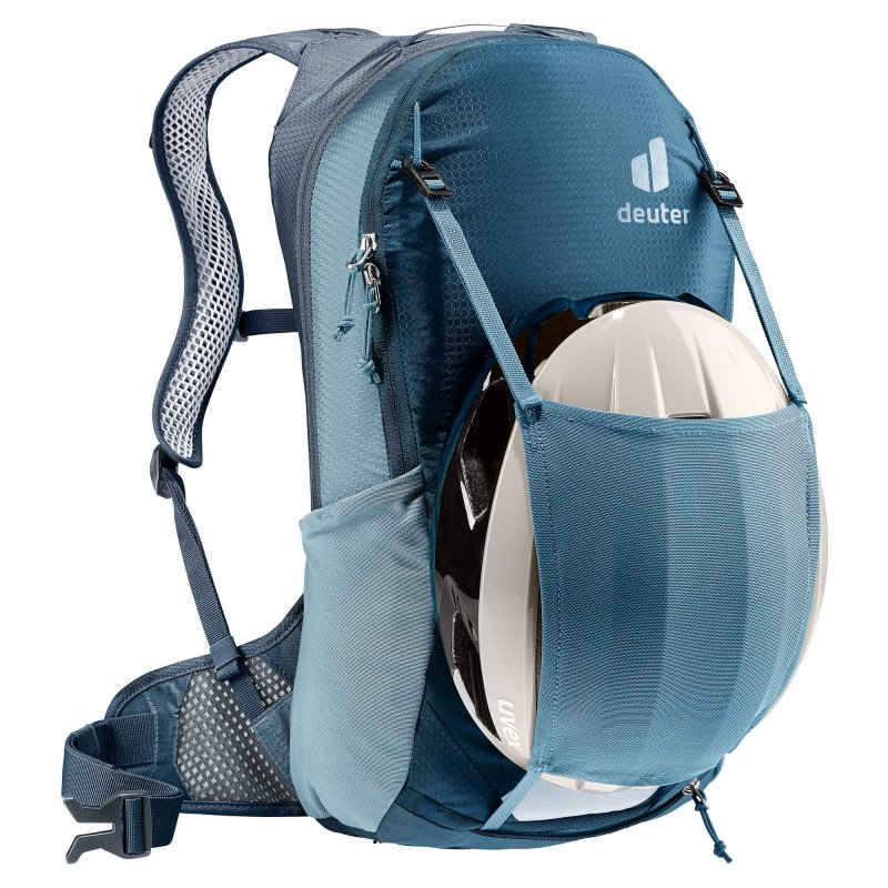 Das Deuter Aircomfort Tragesystem kommt beim Race Air in einer bikespezifischen Variante zum Einsatz. Der gespannte Netzrücken ist geteilt, sodass deine Wirbelsäule in der gebeugten Sitzhaltung auf dem Mountainbike genügend Platz hat. Gemeinsam mit den perforierten Schultergurten und Hüftflossen aus Netzstoff sorgt diese Konstruktion für eine maximale Belüftung und stabilen Sitz auf schweißtreibenden MTB-Trails.