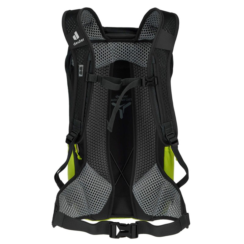 Das Deuter Aircomfort Tragesystem kommt beim Race Air in einer bikespezifischen Variante zum Einsatz. Der gespannte Netzrücken ist geteilt, sodass deine Wirbelsäule in der gebeugten Sitzhaltung auf dem Mountainbike genügend Platz hat. Gemeinsam mit den perforierten Schultergurten und Hüftflossen aus Netzstoff sorgt diese Konstruktion für eine maximale Belüftung und stabilen Sitz auf schweißtreibenden MTB-Trails.