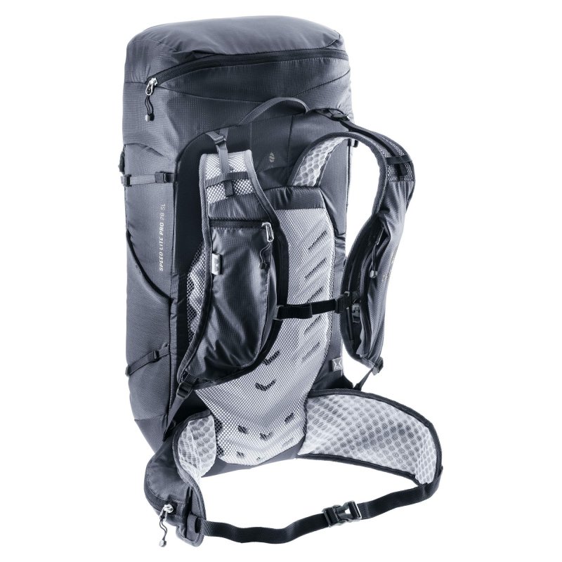 Seine sportive Natur merkt man dem Speed Lite Pro 28 SL schon an seiner durchdachten Raumaufteilung an. So bietet der Tagesrucksack insgesamt vier Fächer auf den Schultergurten und Hüftflossen, damit du auch mit geschultertem Rucksack an eine Softflask (siehe Zubehör), das Handy oder den Energieriegel kommst. Das Tragesystem ist ebenfalls für bewegungsintensive Aktivitäten ausgelegt. Ergonomische Schultergurte und ein körpernah aufliegender Kontaktrücken sorgen für einen stabilen Sitz, während Belüftungskanäle, Perforationen und ein Meshbezug ausreichend Luft an Schultern und Rücken lassen. Mit 740 g ist der Tagesrucksack zudem ein echtes Leichtgewicht.