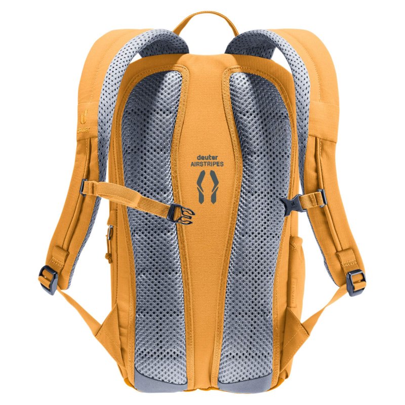 Dank perforierter, ergonomischer Schulterträger und geringer Rückenauflage des Airstripes Rückensystems punktet der Stepout mit maximaler Luftzirkulation und hohem Tragekomfort. Der 2-Wege-Rundbogen-Reißverschluss am Hauptfach, das seitliche Handyfach und die elastische Seitentasche sorgen für schnellen Zugriff auf wichtige Dinge. Im Inneren bietet das Dokumenten- und Laptopfach eine gute Organisation. Der Stoff des PFC-freien, mit dem Grünen Knopf zertifizierten bluesign Produkts besteht aus siebzehn recycelten 0,5 Liter PET Flaschen und wird nach dem bluesign Standard hergestellt.