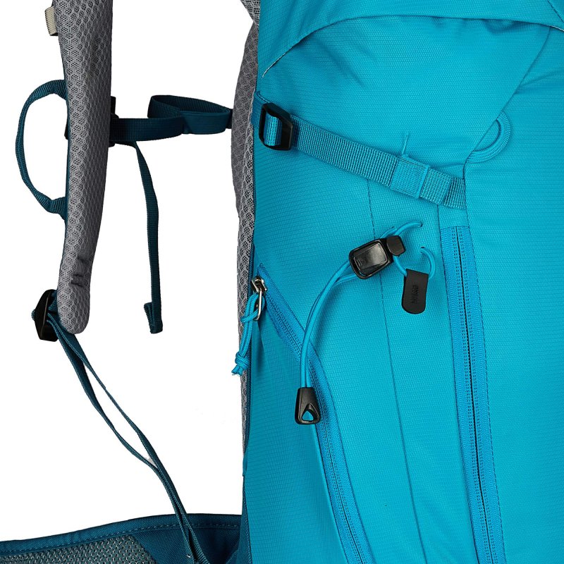 Innenliegende Kompressionsgurte machen den Rucksack besonders geradlinig und sorgen für eine optimale Kompression, selbst wenn die Seitentaschen voll bepackt sind. Die Kompression kannst du auch einhändig während des Rucksacktragens verstellen.