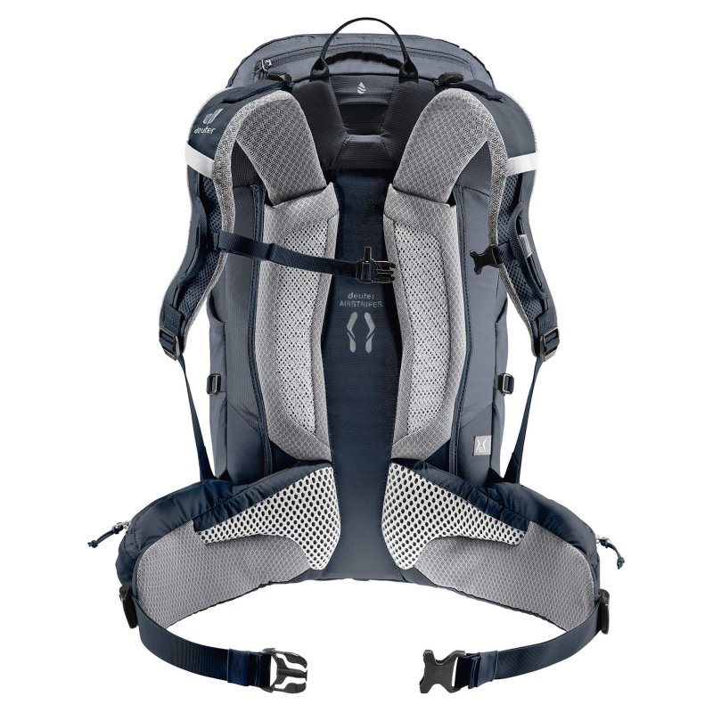 Das Airstripes Rückensystem mit geringer Auflagefläche und luftdurchlässigem, schnell trocknendem Air Spacer Mesh sorgt zusammen mit den perforierten Schulterträgern und Hüftflossen für maximale Belüftung, gute Lastverteilung und kompakten Sitz auf Mehrtagestouren mit Klettersteig. Dank Fixierungen an den Schulterträgern sind die Karabiner des Klettersteigsets stets griffbereit und das Material durch den großen Reißverschluss-Hauptfachzugang, die elastischen Seitentaschen und das separate Bodenfach gut sortiert und schnell verräumt.