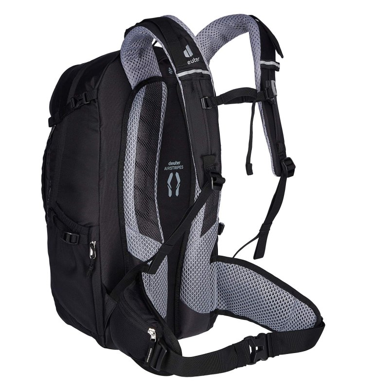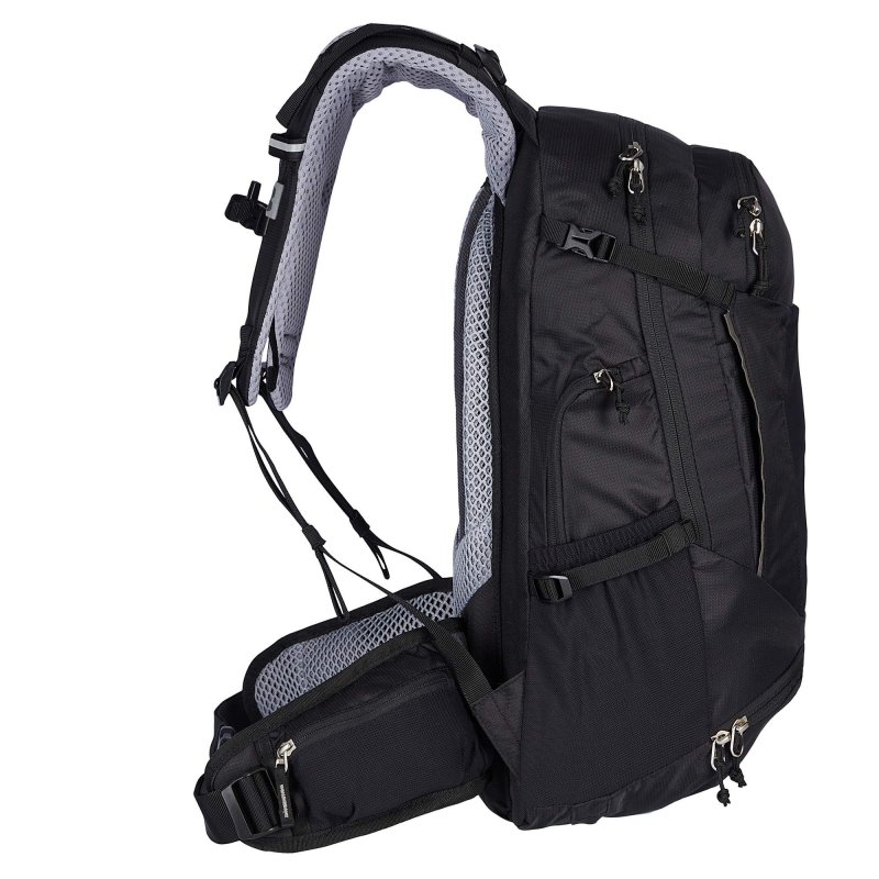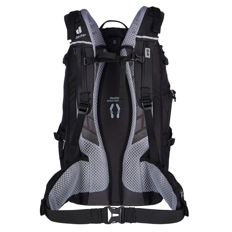 Das belüftete Tragesystem sitzt dabei wie angegossen. Wackeln ist für den Trans Alpine 24 ein Fremdwort. Dafür sorgen die beiden Aluschienen im Rucksack, die du an die Krümmung deines Rückens anpassen kannst. Die beweglich aufgehängten Schulterträger lassen dir die volle Kontrolle am Lenker, der breite Hüftgurt bringt die nötige Festigkeit. Der breite Luftkanal am Rücken garantiert ein angenehmes Klima.