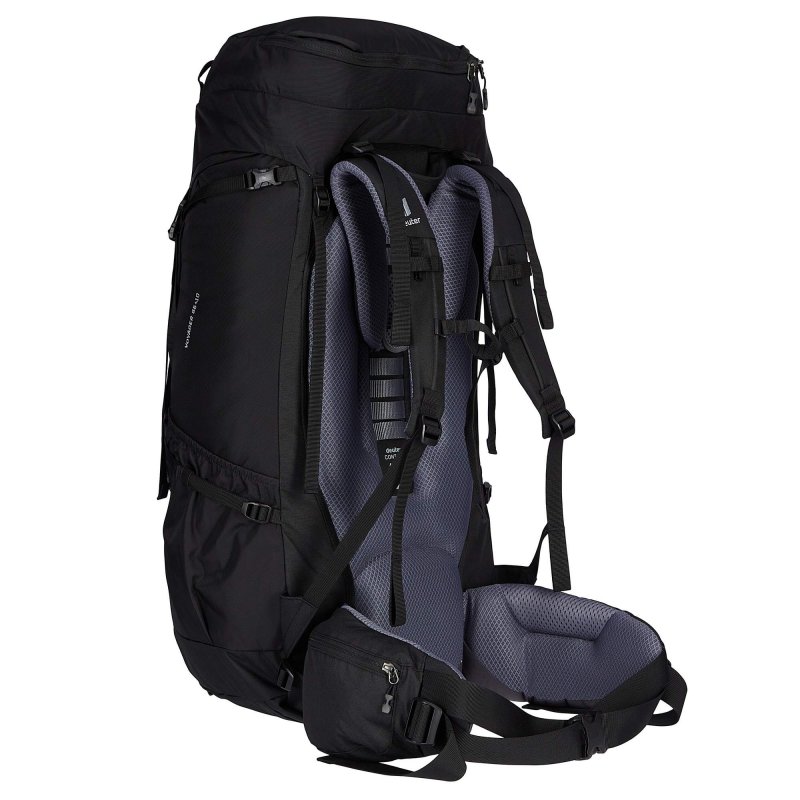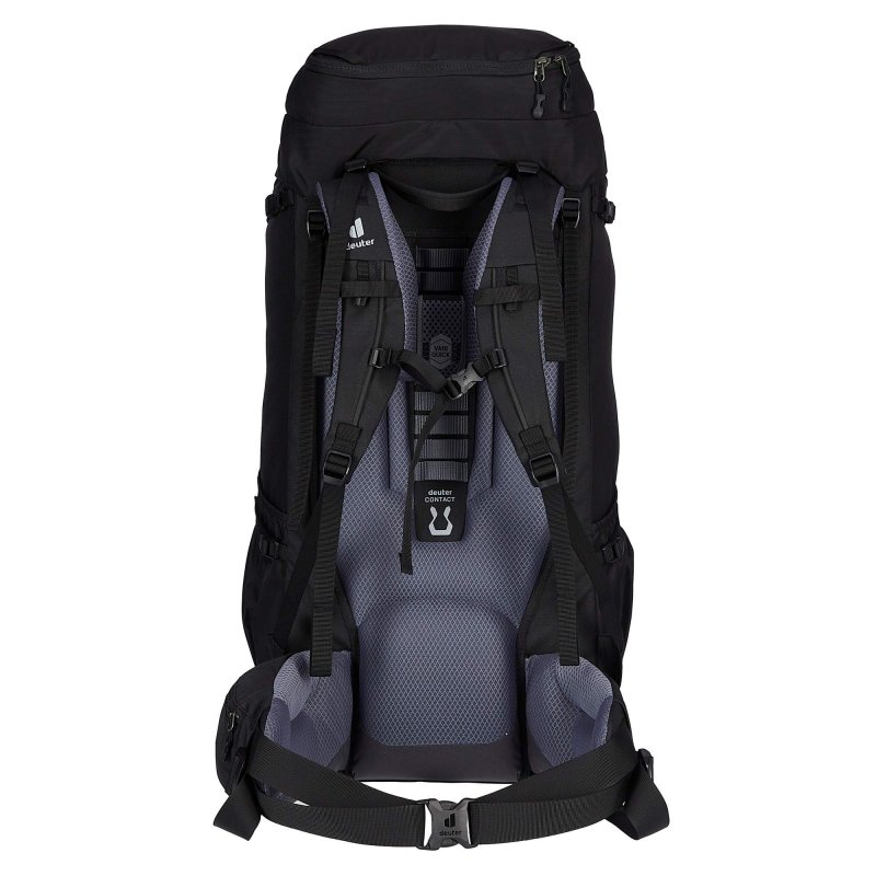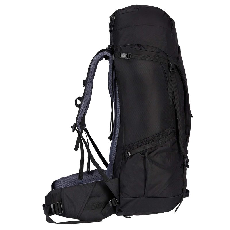 Der Trekkingrucksack hat einen elastischen Federstahlrahmen, der das Rucksackgewicht direkt auf den Hüftgurt überträgt und für einen ausgewogenen Sitz sorgt. Die Polsterung des Tragesystems ist schön satt und über den Klettverschluss am Rücken kannst du die Rückenlänge perfekt auf dich anpassen.