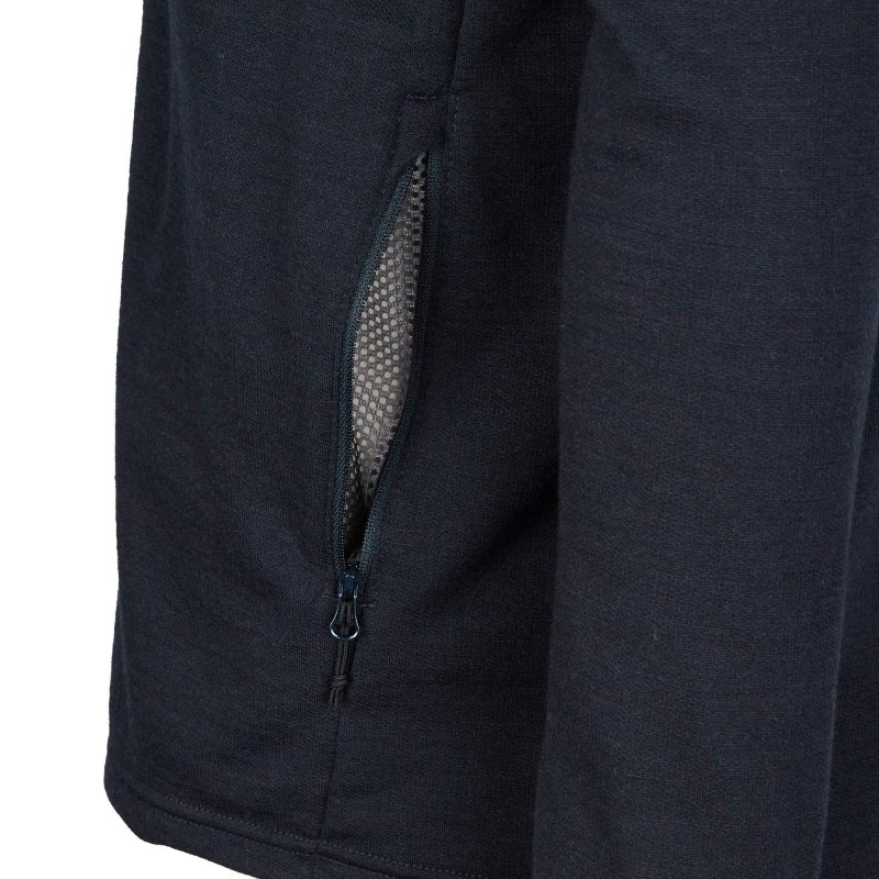 Die Innenseite ist aus reiner, extrafeiner Merinowolle gefertigt, die besonders weich auf der Haut liegt. Zudem wirkt Wolle von Natur aus temperaturregulierend und geruchshemmend. Für die Außenseite wurde Merinowolle mit Polyamid kombiniert. Hierdurch wird die Strapazierfähigkeit der Jacke erhöht und es kommt es nicht so schnell zu Abrieb, wenn du mit einem Rucksack unterwegs bist. Zudem wurde die Außenseite mit Aquaduct behandelt. Aquaduct ist eine stark feuchtigkeitsleitende Ausrüstung, die eine ähnliche Wirkung wie ein absorbierender Docht hat. Dadurch kann entstehende Körperfeuchtigkeit noch schneller nach außen transportiert werden. Zurück bleibt ein angenehm trockenes Tragegefühl.