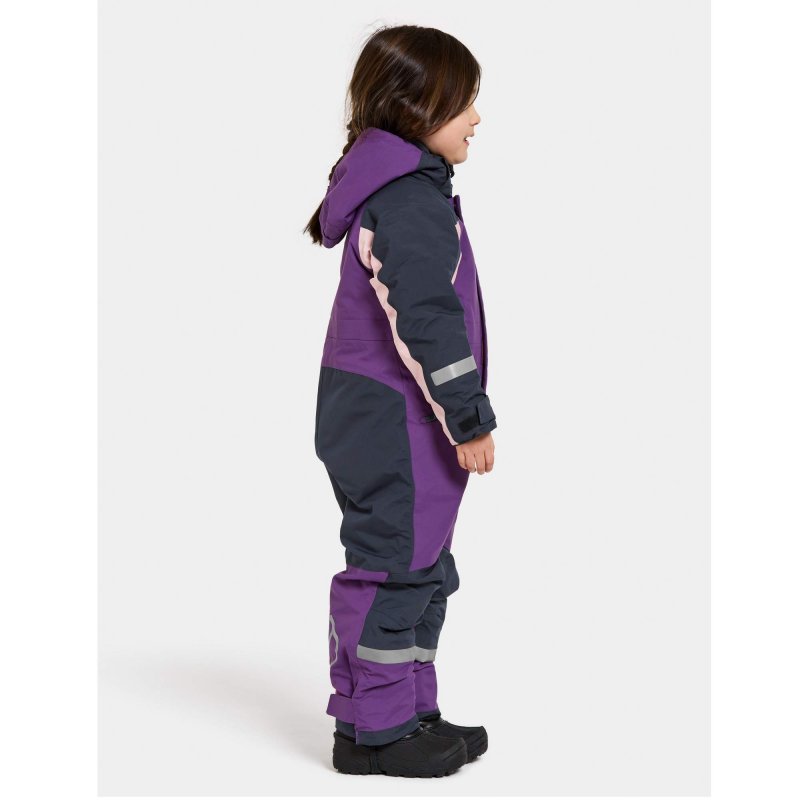 Die bequeme Passform mit vorgeformter Kniepartie lässt genügend Bewegungsspielraum zum Toben. Auf Taillenhöhe befindet sich ein Schnürzug, mit dem die Weite nach Wunsch angepasst werden kann. Vorne und hinten an den Beinen, an den Ärmeln und an der Kapuze verfügt der Schneeanzug über großflächige, reflektierende Designelemente. In einer der Einschubtaschen befindet sich außerdem eine Öse, an der ein Reflektor befestigt werden kann, ohne dass Löcher im Shellmaterial entstehen.