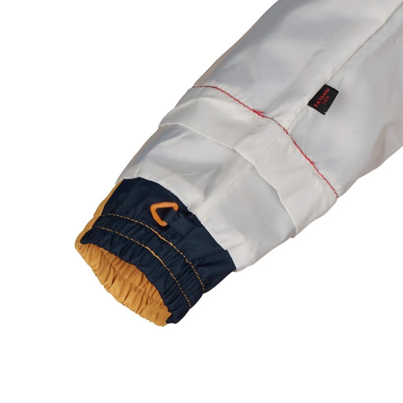 Die Kapuze ist mit Druckknöpfen an der Jacke befestigt, die sich ablösen, wenn deine Kinder beim Spielen irgendwo hängen bleiben. Dank der elastischen Seiten und des verstellbaren Klettverschlusses am Hinterkopf sitzt die Kapuze sicher und bequem auf dem Kopf. Der Schnürzug im Saum bietet zusätzlichen Schutz vor eindringender Nässe und kaltem Wind. Die Ärmelbündchen sind elastisch und mit Sicherheitsschlaufen ausgestattet, an denen die Handschuhe fixiert werden können. Außerdem lassen sich die Ärmel dank praktischer Mitwachs-Funktion um bis zu einer Kleidergröße verlängern. So haben die Kids länger etwas von ihrer neuen Lieblingsjacke.