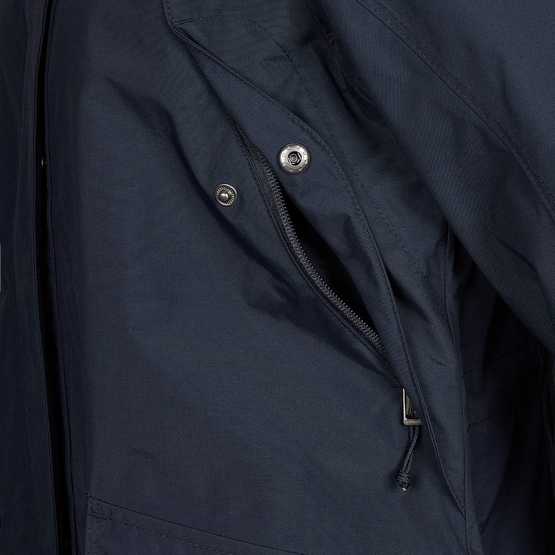 Das Außenmaterial hat einen kräftigen, festen Griff und ist sehr langlebig. Die Kapuze lässt sich mit nur einer Hand verstellen, so kannst du sie prima bedienen, auch wenn die andere Hand mit Einkaufstaschen besetzt ist. Der ungefütterte Parka hat eine reguläre, leicht taillierte Passform, die genug Platz lässt, um bei kühlem Wetter noch einen wärmenden Pullover drunter zu ziehen. Die Taillenweite lässt sich per Schnürzug individuell regulieren. Die vielen Taschen bieten jede Menge Stauraum für deine Habseligkeiten und verleihen dem Parka seinen schönen, klassischen Look.
