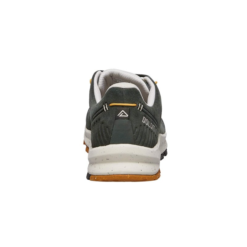 Als Obermaterial kommt besonders weiches Veloursleder zum Einsatz. Es macht mühelos auch sportlichere Aktivitäten mit, verleiht dem hochwertigen Halbschuh zugleich aber einen wunderbar edlen Look. Im Bereich der Schuhspitze kommt eine dezente Zehenschutzkappe zum Einsatz, die verdeutlicht woher die Marke Dolomite kommt. Eine weich dämpfende EVA-Zwischensohle aus recyceltem Material sorgt auch an langen Tagen für hohen Komfort. Die griffige, ebenfalls aus recycelten Materialien gefertigte Laufsohle bietet sowohl auf harten, als auch auf losen Untergründen hervorragenden Halt.