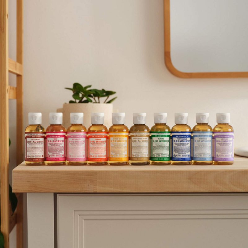 Dr. Bronner's 18-In-1 Naturseife hält, was sie verspricht. Die Inhaltsstoffe sind auf biologischer Basis hergestellt, vegan und in vielen Fällen Fair Trade zertifiziert. Die Vielzahl an Anwendungen ermöglicht dir nur eine Seife im Gepäck dabei zu haben. Das spart Gewicht und Nerven, denn das Suchen nach Spülmittel, Shampoo, Seife etc. entfällt. Die Seife eignet sich aber auch ideal zum Rasieren und Duschen, als Wasch- und Spülmittel sowie zur Babypflege oder als Schaumbad.