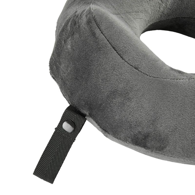 Das ergonomische Design des Nackenkissens stützt den Kopf zur Seite und nach hinten ab. Am Hals kann das Kissen durch einen Druckknopfverschluss verbunden werden, damit es sich nicht verdreht. Lange Bahn-, Auto- und Flugreisen können so bequemer überbrückt werden, sodass du am Ziel ausgeruhter ankommst. Während des Transports kannst du das Kissen an der Gurtbandschlaufe befestigen. Nach der Reise kann der Kissenbezug aus Microfleece abgenommen und gewaschen werden.
