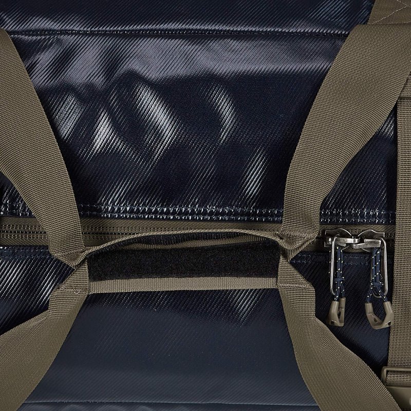 Ausgestattet mit insgesamt 6 Griffen und zwei längeren Tragegriffen ist die Duffel schon ideal händelbar. Wenn du die Hände aber lieber frei haben möchtest, setzt du die Reisetasche einfach auf den Rücken. Denn links und rechts neben dem Reißverschluss verstecken sich komfortable und sicher verdeckte Schultertragegurte. Alle Griffe und Trageriemen bestehen aus starkem, durchgängig verarbeitetem Gurtband.