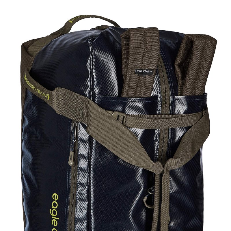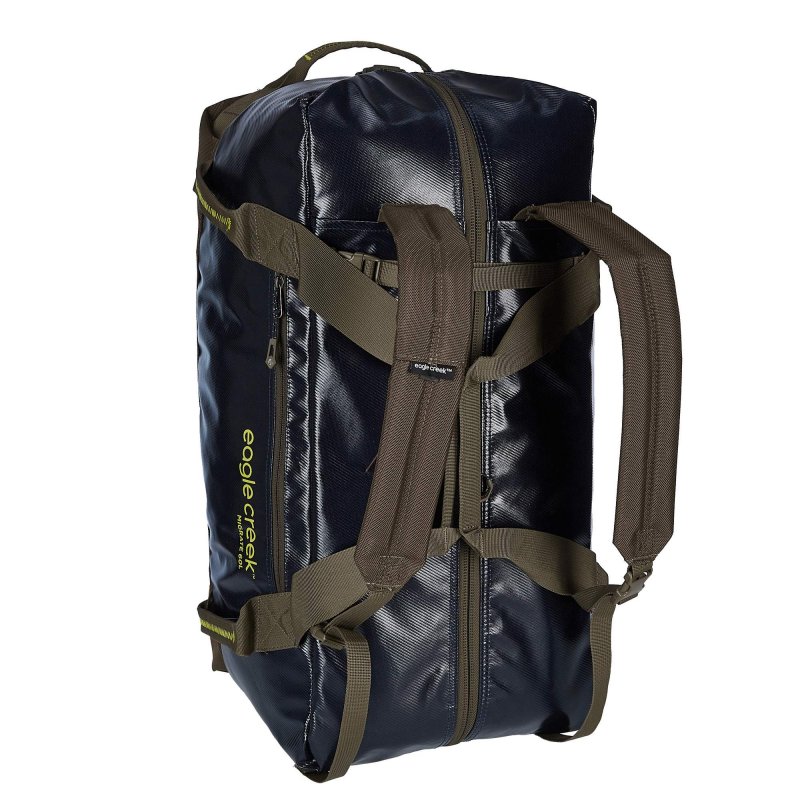 Eagle Creek setzt bei den Migrate Duffels auf eine Beschichtung aus recyceltem Kunststoff von Windschutzscheiben. Die Taschen sind sehr leistungsstark. Sollte doch mal etwas sein, greift die Eagle Creek No-Matter-What-Garantie.