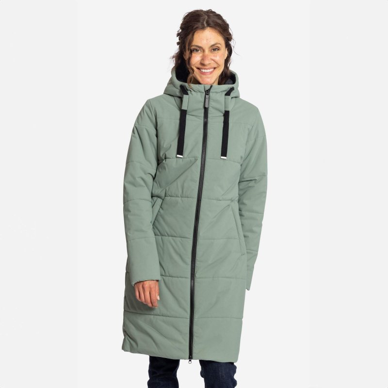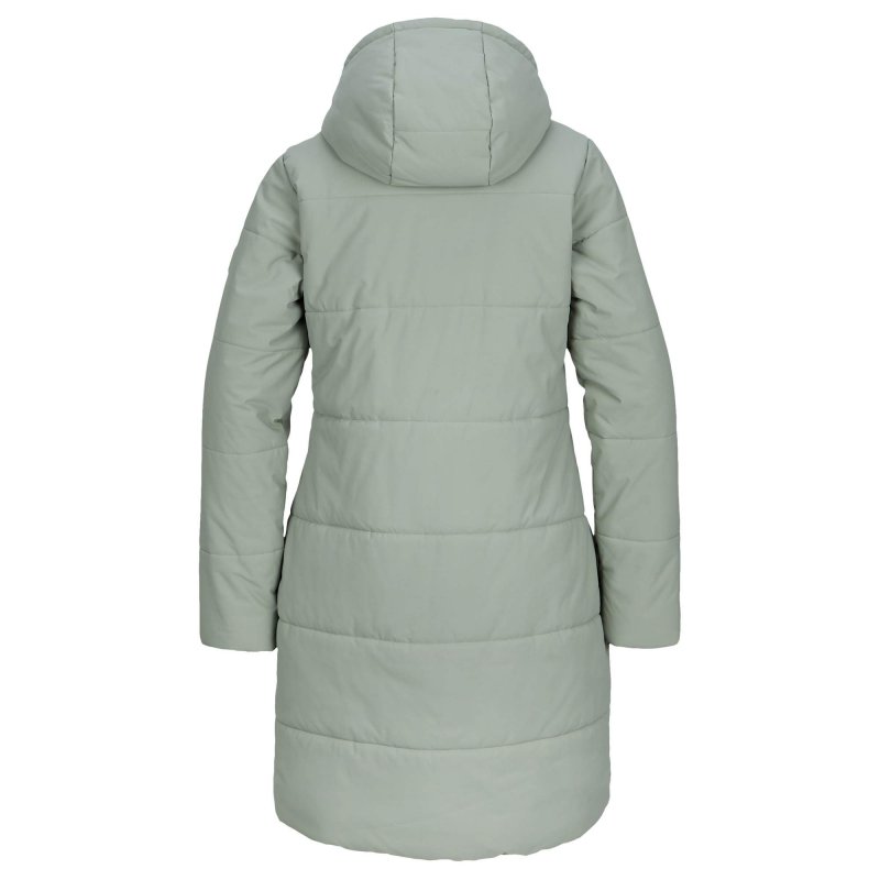 Die gut isolierende Kunstfaser-Füllung spendet wohlige Wärme bei kaltem Wetter. Die Füllung besteht, ebenso wie das Innenmaterial, aus recyceltem Polyester und ist damit besonders ressourcenschonend. Der Wintermantel trägt sich auch dann sehr komfortabel, wenn du in aller Eile schnell noch die letzten Einkäufe erledigen willst. Hierfür ist das stark atmungsaktive Material verantwortlich. Weiterer Vorteil: Dank seiner wasserabweisenden Imprägnierung steckt der Wintermantel auch mal einen leichten Regen- oder Schneeschauer weg, ohne dass die Nässe zu dir vordringt.