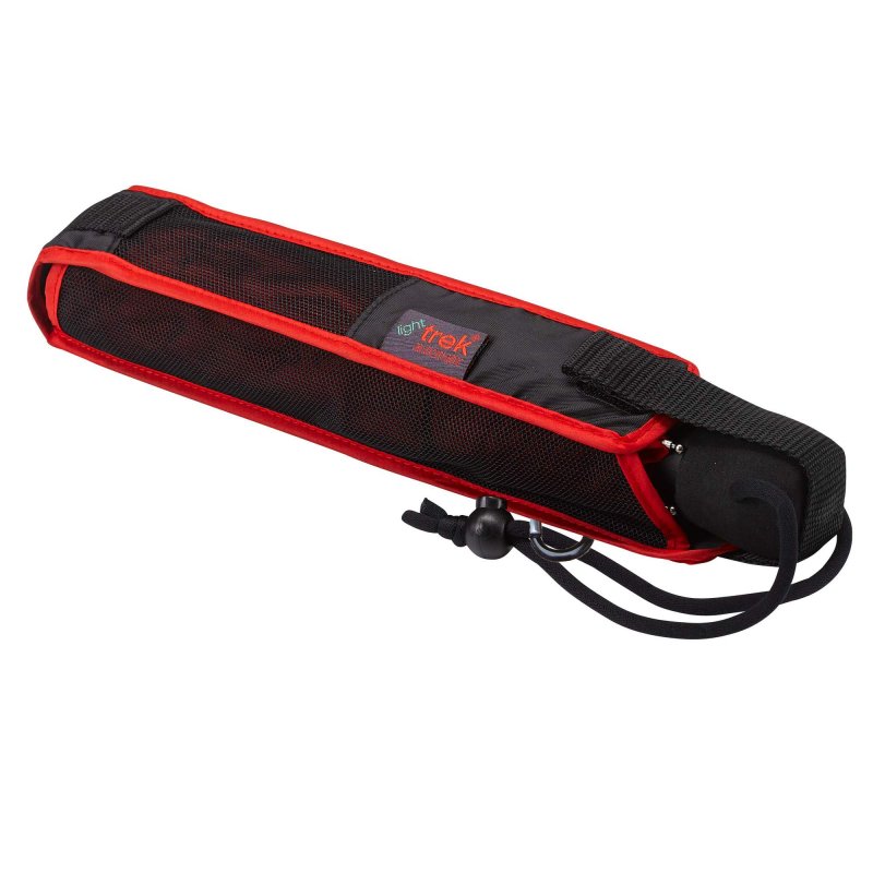 Für Stabilität sorgen Doppelnähte zwischen den einzelnen Segmenten. Ein gehärteter Aluminium/Metall-Profil-Schaft trägt die weiteren Gestellteile aus Glasfaser, Eloxal-Aluminium und Glasfaser-Polyamid. Alle Gestellteile sind natürlich hochelastisch, korrosions- und verrottungsfest. Zum Transport dient eine strapazierfähige Nylon-Hülle mit Polyester-Netzeinsatz und Fixierschlaufe zum Tragen am Rucksack oder Gürtel sowie ein Aluminium-Karabiner als weitere alternative Befestigung.