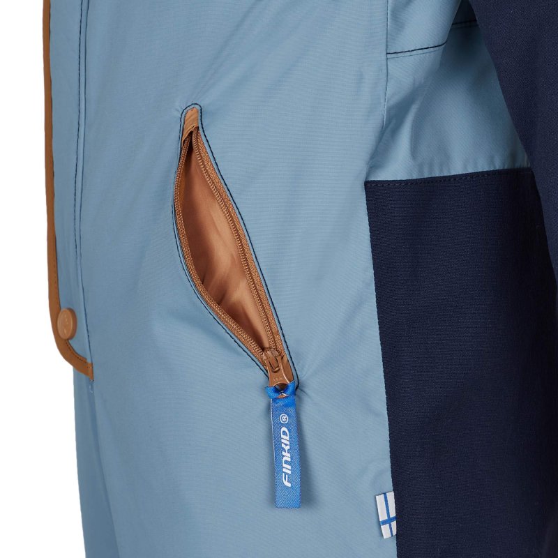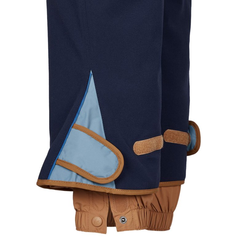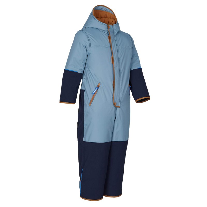 Das recycelte Außenmaterial ist strapazierfähig und dank seiner PU-Beschichtung außerdem zuverlässig wind- und wasserdicht (Wassersäule: 10.000 mm). Die warme, atmungsaktive Kunstfaser-Füllung hält den Kids die Winterkälte vom Leib. So sorgt der Schneeanzug dafür, dass die Lütten trocken und gut gewärmt durch den Schnee tollen können. Damit kein Schnee von unten in die Hosenbeine gelangt, sind die Beinabschlüsse mit integrierten Gamaschen versehen. Gegen Nässe in den Ärmeln schützt die weiche, elastische Stulpe an den Ärmelbündchen.